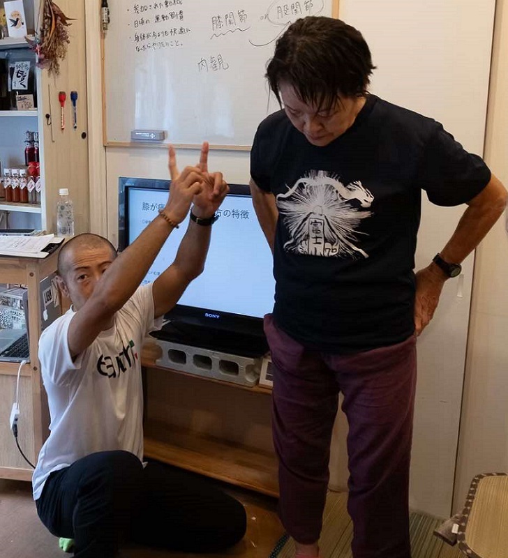 自分の身体意識を高めるような働きかけを行います。"癖"や"バランス"などはなかなか自分では気付きにくいので、トレーナーから指摘されることで感覚が高まります。動き方や左右の重心バランスなどは適切な知識と技術を得て予防や対処が可能です。