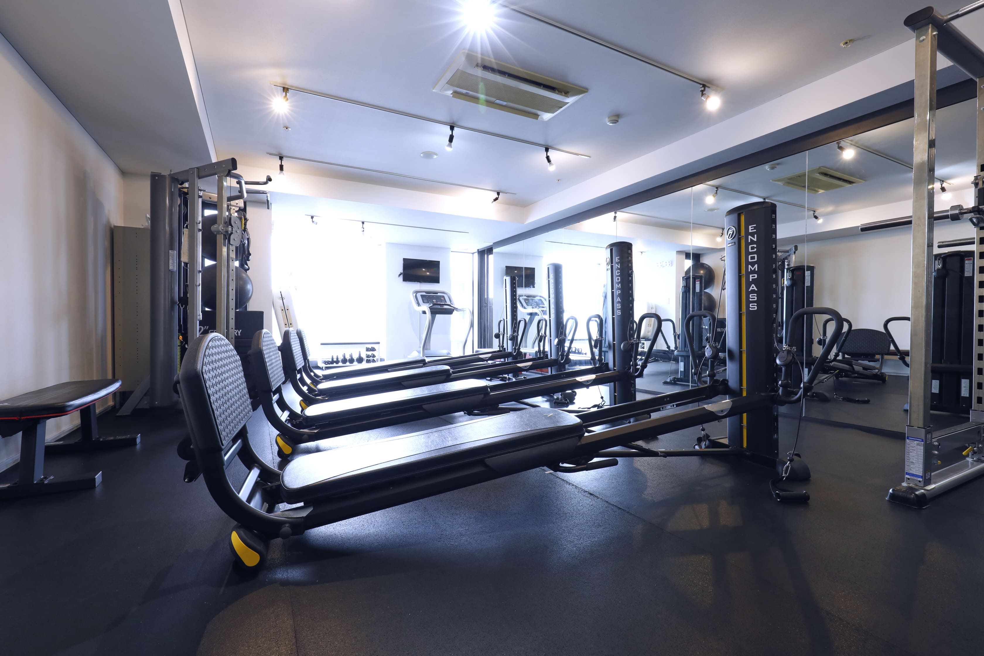 当クラブでは、トータルジム社製ワイヤー系トレーニングマシン「ENCOMPASS」を導入しています。ENCOMPASSは、一台で200種類以上のエクササイズバリエーションを有し、全身のインナーとアウターの筋肉を鍛えることができる、機能性、効果性に大変優れたトレーニングマシンです。筋力トレーニングと同時に、関節を最大可動域まで伸縮させることで、関節可動域の向上にも効果があります。また、同時に複数の筋肉群を連携して動作させるため、効率的かつ効果的に、機能性やスポーツパフォーマンスの向上を実現します。効果が早く、分かりやすいのもENCOMPASSの特徴です。
